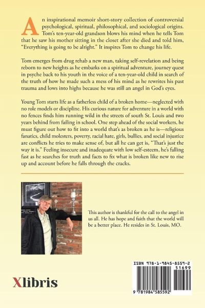An inspirational memoir short-story collection of controversial psychological, spiritual, philosophical, and sociological origins. Tom's ten-year-old grandson blows his mind when he tells Tom that he saw his mother sitting in the closet after she died and told him, "Everything is going to be alright." It inspires Tom to change his life. Tom emerges from drug rehab a new man, taking self-revelation and being reborn to new heights as he embarks on a spiritual adventure, journey quest in psyche back to his youth in the voice of a ten-year-old child in search of the truth of how he made such a mess of his mind as he rewrites his past trauma and lows into highs because he was still an angel in God's eyes. Young Tom starts life as a fatherless child of a broken home-neglected with no role models or discipline. His curious nature for adventure in a world with no fences finds him running wild in the streets of south St. Louis and two years behind from failing in school. One step ahead of the social workers, he must figure out how to fit into a world that's as broken as he is-religious fanatics, child molesters, poverty, racial hate, girls, bullies, and social injustice are conflicts he tries to make sense of, but all he can get is, "That's just the way it is." Feeling insecure and inadequate with low self-esteem, he's falling fast as he searches for truth and facts to fix what is broken like new to rise up and account before he falls through the cracks.