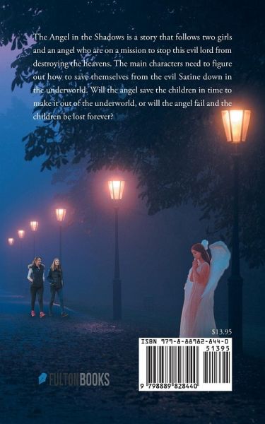 The Angel in the Shadows is a story that follows two girls and an angel who are on a mission to stop this evil lord from destroying the heavens. The main characters need to figure out how to save themselves from the evil Satine down in the underworld. Will the angel save the children in time to make it out of the underworld, or will the angel fail and the children be lost forever?