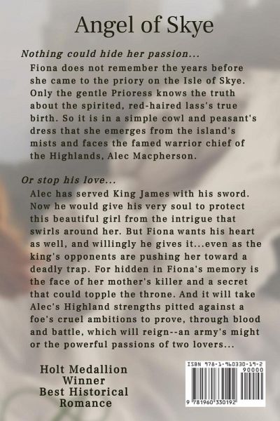 USA Today Bestselling Author Winner of the Holt Medallion for Best Historical Romance From the wild shores of the Scotland's Western Isles to the bloody fields of France to the glittering courts of Europe, the Macpherson Trilogy follows a family's fight for Scottish independence against the Tudor king, Henry VIII. Nothing could hide her passion... Fiona does not remember the years before she came to the priory on the Isle of Skye. Only the gentle Prioress knows the truth about the spirited, red-haired lass's true birth. So it is in a simple cowl and peasant's dress that she emerges from the island's mists and faces the famed warrior chief of the Highlands, Alec Macpherson. Or stop his love... Alec has served King James with his sword. Now he would give his very soul to protect this beautiful girl from the intrigue that swirls around her. But Fiona wants his heart as well, and willingly he gives it...even as the king's opponents are pushing her toward a deadly trap. For hidden in Fiona's memory is the face of her mother's killer and a secret that could topple the throne. And it will take Alec's Highland strengths pitted against a foe's cruel ambitions to prove, through blood and battle, which will reign--an army's might or the powerful passions of two lovers...