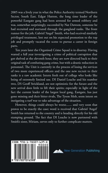 2005 was a lively year in what the Police Authority termed Northern Sector, South East. Edgar Hutton, the long time leader of the powerful Eastgate gang had been arrested for armed robbery and was, somewhat surprisingly, succeeded by Nat Dawson, someone he had recruited and nurtured through the gangland ranks. The front runner for the job, Gabriel 'Angel' Smith, who had received similarly privileged treatment, lost out on his expected promotion to the top job and promptly vacated the scene to pursue a career in foreign parts. Ten years later the Organised Crime Squad is in disarray. Having wasted a full year investigating a crime of political corruption that got shelved at the eleventh hour, they are now directed back to their original task of combating gang crime, but with a drastic reduction in personnel. The Unit is currently in the process of losing the services of two more experienced officers and the one new recruit to their ranks is a raw academic Intern fresh out of college who looks like being of extremely limited use. DI Daniel Loache and his number two, DS Geoff Strickland, are not optimistic for the future and the new arrival does little to lift their spirits; especially in light of the fact the current leader of the largest local gang, Eastgate, has just gone missing and their bitter rivals, The Tyson Mob, seem intent on instigating a turf war to take advantage of the situation. However, things could always be worse....... and very soon that proves to be exactly the case; word is received that Gabriel 'Angel' Smith has returned to the country and is heading directly for his old stamping ground. The fact that DI Loache is now partnered with Smith's sister, Miriam, serves only to further complicate matters.
