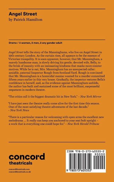 Angel Street tells the story of the Manninghams who live on Angel Street in 19th century London. Under the guise of kindliness, handsome Mr. Manningham is torturing his wife into insanity. He accuses her of petty aberrations that he has arranged himself; and since her mother died of insanity, she is more than half convinced that she, too, is going out of her mind. While her diabolical husband is out of the house, a benign police inspector visits her and ultimately proves to her that her husband is a maniacal criminal suspected of a murder committed fifteen years ago in the same house, and that he is preparing to dispose of her. Then starts the game of trying to uncover the necessary evidence against Mr. Manningham. It is a thrilling and exciting melodramatic game.