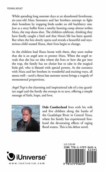 While spending long summer days at an abandoned farmhouse, six-year-old Mara Summers and her brothers attempt to fight their boredom by trapping birds under an old hackberry tree. Just as a stray bullet from a nearby hunting camp almost strikes Mara, the trap slams shut. The children celebrate, thinking they have finally caught a bird and that Mara's life has been spared. But when the box slowly opens and reveals a beautiful and mysterious child named Iliana, their lives begin to change. As the children lead Iliana home with them, they soon realize that she is an angel sent to protect Mara. When the angel reveals that she has no idea where she lives or how she got into the trap, the family has no choice but to take in the magical little girl, who is blessed with special powers. As she connects with Mara and her brothers in wonderful and exciting ways, all seems well-until a fierce late summer storm brings a tragedy of monumental proportions. Angel Trap is the charming and inspirational tale of a tiny guardian angel and the family she swoops in to save, offering a simple message of faith, hope, and love.