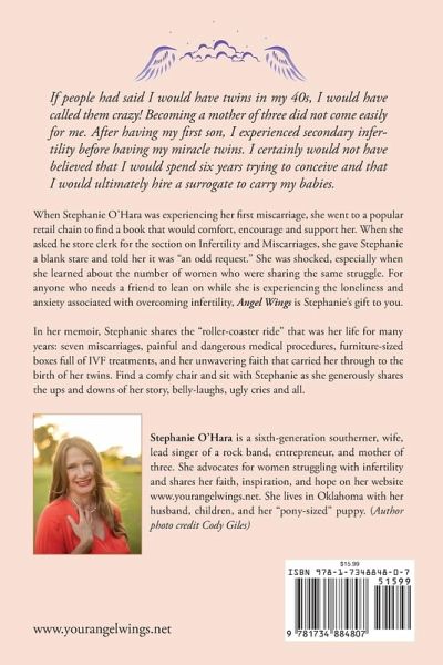Stephanie O'Hara is a sixth-generation southerner, wife, lead singer of a rock band, entrepreneur, and mother of three. She advocates for women struggling with infertility and shares her faith, inspiration, and hope on her website www.yourangelwings.net. She lives in Oklahoma with her husband, children, and her "pony-sized" puppy.