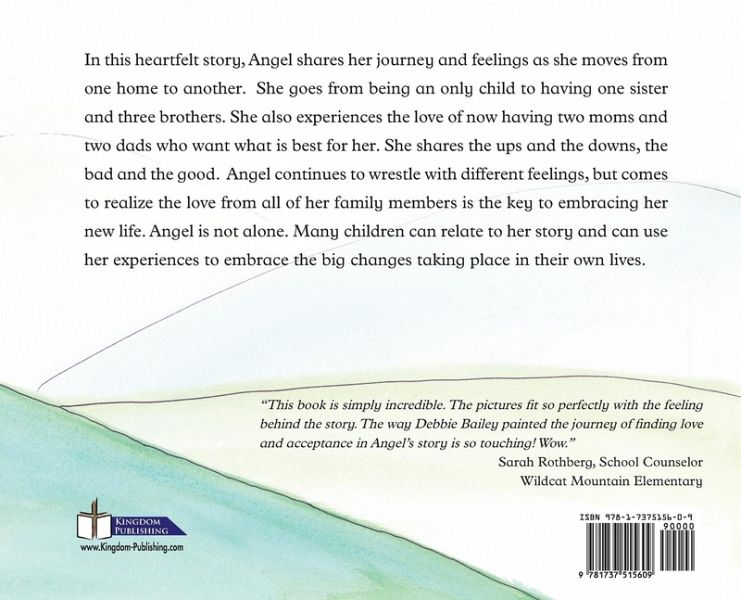 In this heartfelt story, Angel shares her journey and feelings as she moves from one home to another. She goes from being an only child to having one sister and three brothers. She also experiences the love of now having two moms and two dads who want what is best for her. She shares the ups and the downs, the bad and the good. Angel continues to wrestle with different feelings, but comes to realize the love from all of her family members is the key to embracing her new life. Angel is not alone. Many children can relate to her story and can use her experiences to embrace the big changes taking place in their own life.