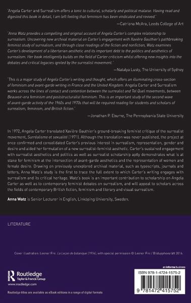 In 1972, Angela Carter translated Xavière Gauthier's feminist critique of the surrealist movement, Surréalisme et sexualité (1971). Though the translation was never published, the project confirmed and consolidated Carter's interest in surrealism, representation, gender and desire and aided her formulation of a new surrealist-feminist aesthetic. Carter's engagement with surrealist aesthetics, politics, and scholarship demonstrates what is at stake for feminism at the intersection of avant-garde aesthetics and the representation of women and female desire. Drawing on previously unexplored archival material, Watz is the first to trace how Carter was influenced by the surrealist movement.