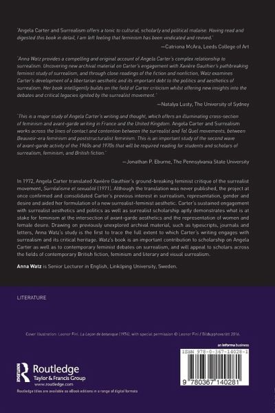 In 1972, Angela Carter translated Xavière Gauthier's feminist critique of the surrealist movement, Surréalisme et sexualité (1971). Though the translation was never published, the project confirmed and consolidated Carter's interest in surrealism, representation, gender and desire and aided her formulation of a new surrealist-feminist aesthetic. Carter's engagement with surrealist aesthetics, politics, and scholarship demonstrates what is at stake for feminism at the intersection of avant-garde aesthetics and the representation of women and female desire. Drawing on previously unexplored archival material, Watz is the first to trace how Carter was influenced by the surrealist movement.