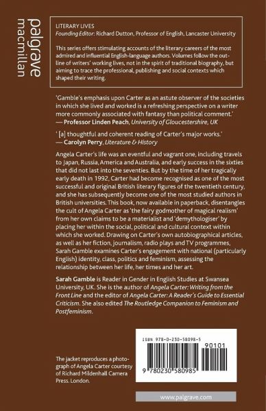 'Placing the work of an author like Angela Carter who consistently plays around with the notion of the writing self and whose own autobiographical essays and statements are not to be entirely trusted within its biographical and cultural contexts is a demanding project. In Angela Carter: A Literary Life, Sarah Gamble rises to the challenge, demonstrating convincingly that Carter's portrayal of the self as provisional and contingent does not mean that we cannot make connections between her art and her life. Gamble's emphasis upon Carter as an astute observer of the societies in which she lived and worked is a refreshing perspective on a writer more commonly associated with fantasy than political comment.' - Professor Linden Peach, University of Gloucestershire, UK