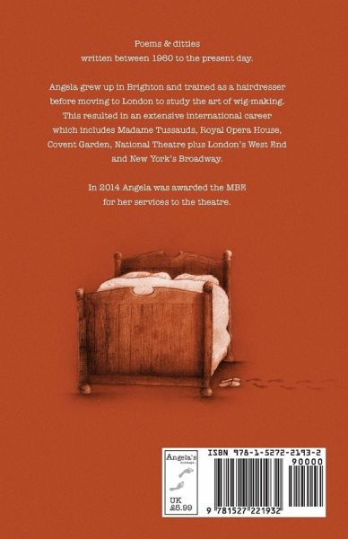 Poems & ditties written between 1960 to the present day. Angela grew up in Brighton and trained as a hairdresser before moving to London to study the art of wig-making. This resulted in an extensive international career which includes Madame Tussauds, Royal Opera House, Covent Garden, National Theatre plus London’s West End and New York’s Broadway. In 2014 Angela was awarded the MBE for her services to the theatre.