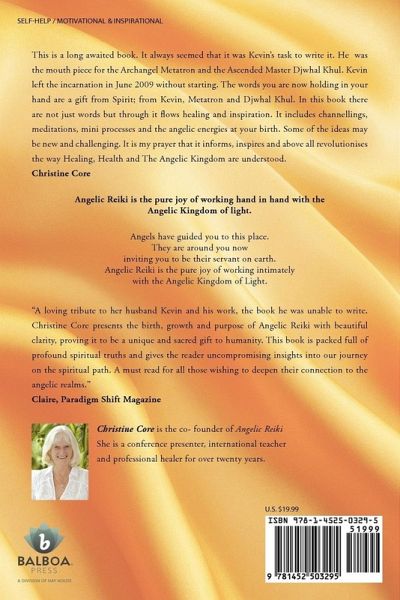 This is a long awaited book. It always seemed that it was Kevin's task to write it. He was the mouth piece for the Archangel Metatron and the Ascended Master Djwhal Khul. Kevin left the incarnation in June 2009 without starting. The words you are now holding in your hand are a gift from Spirit; from Kevin, Metatron and Djwhal Khul. In this book there are not just words but through it flows healing and inspiration. It includes channellings, meditations, mini processes and an Archangelic Horoscopes. Some of the ideas may be new and challenging. It is my prayer that it informs, inspires and above all revolutionise the way Healing, Health and The Angelic Kingdom are viewed. Christine Core Angelic Reiki is the pure joy of working hand in hand with the Angelic Kingdom of light. Angels have guided you to this place. They are around you now inviting you to be their servant on earth. Angelic Reiki is the pure joy of working intimately with the Angelic Kingdom of Light. "A loving tribute to her husband Kevin and his work, the book he was unable to write. Christine Core presents the birth, growth and purpose of Angelic Reiki with beautiful clarity, proving it to be a unique and sacred gift to humanity. This book is packed full of profound spiritual truths and gives the reader uncompromising insights into our journey on the spiritual path. A must read for all those wishing to deepen their connection to the angelic realms." Claire, Paradigm Shift Magazine