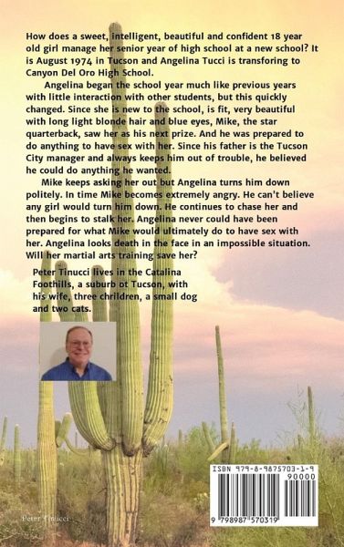Will Angelina survive the predicament a jealous psychotic jock puts her in? Will her martial arts training save her? Will she survive to be able to race her dream car that she just received for her 18th birthday? How will her new friends support her and will they see her again? Angelina begins her senior year of high school at a new school in 1974 Tucson, Arizona. She is very beautiful, fit, confident and a straight A student and she has a very unique family. Her family history goes back to 1930's Tucson and gives insight to her personality. Angelina is very polite, proper, acts like a lady and this caused difficulties interacting with other students at her last school. At the new school they don't know how to interact with her. Do to this she fills her spare time working at her father's auto repair and performance shop, studying and training in martial arts. Angelina has a very close relationship with her family, especially with her mother and has a connection to her Aunt Maria that borders on clairvoyance. During the confrontations with the jock she has major self discovery. Her method of dealing with the confrontations with the jock, Mike, catch the eyes of some students and they finally approach her. She makes her first friends and becomes a role model to them. Angelina has a unique way of interacting with other students which inspire them to become better people. But what Mike puts her through could end it all. Will she survive?