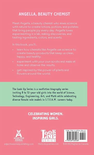 The career book series you wish you had as a kid. Introduce kids ages 8 to 12 to a real woman in a ridiculously fun STEM career that could change their future while inspiring curiosity and confidence in Science, Technology, Engineering, Art, and Math. Part true-story biography, part STEM activity book, ANGELLA, BEAUTY CHEMIST celebrates the story of Angella, a real woman in science who gets to perform experiments in a chemistry lab every day-it's her job! Angella believes that science is for everyone, and you don't have to change who you are to fit in. ANGELLA, BEAUTY CHEMIST includes:FEMALE ROLE MODEL: In short chapters and a fun narrative, young readers learn how Angella grew from a curious kid into a real-life chemist. FUN FACTS: ¿¿¿¿¿¿¿Readers are introduced to chemistry basics like how Angella uses chemical elements, molecules, acids, and bases to create science experiments and formulas for beauty products like shampoo, bubble bath, bath bombs, and more! STEAM ACTIVITIES: Kids complete hands-on STEAM activities like how to mix their very own face mask, lip scrub, foot scrub, and more. Why do female career role models in STEM matter? Women make up just 27% of the STEM workforce. STEM careers have higher salaries and higher rates of employment while tackling some of the world's most pressing issues, which are currently lacking a female perspective. Welcome all kids into the world of STEM with The Look Up Series. Celebrate female role models by sharing extraordinary women's stories and career paths with a side of some serious girl power. These real-life stories feature not famous women, but real women who can become your kid's childhood heroes. Let's get to work with The Look Up Series! Collect all five books in The Look Up Series, winner of the Best Nonfiction Book Series from the Moonbeam Children's Book Awards and written by award-winning American Girl author Aubre Andrus: Amanda, Toy Engineer Zi, Video Game Developer Dr. Maya, Ice Cream Scientist Angella, Beauty Chemist Tracey, Theme Park Designer