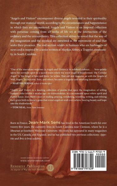 ""Angels and Visitors"" encompasses diverse angels revealed in their spirituality through our material world, according to the circumstances and happenstance in which they are encountered. Angels and Visitors is an inspired collection with personae coming from all walks of life set at the intersection of the ordinary and the extraordinary. This collection strives to reveal that the way of the imagination and the mystical are entwined in the movement of soul that seeks their presence. The end section relates to humans who are harbingers of news and is inspired by a series written at Mepkin Abbey, a Trappist community, in South Carolina.