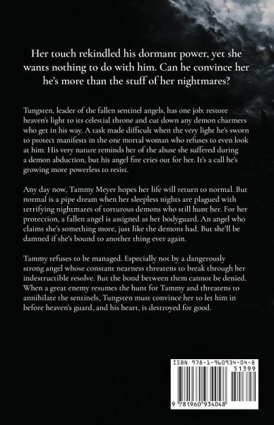 Her touch rekindled his dormant power, yet she wants nothing to do with him. Can he convince her he's more than the stuff of her nightmares? Tungsten, leader of the fallen sentinel angels, has one job: restore heaven's light to its celestial throne and cut down any demon charmers who get in his way. A task made difficult when the very light he's sworn to protect manifests in the one mortal woman who refuses to even look at him. His very nature reminds her of the abuse she suffered during a demon abduction, but his angel fire cries out for her. It's a call he's growing more powerless to resist. Any day now, Tammy Meyer hopes her life will return to normal. But normal is a pipe dream when her sleepless nights are plagued with terrifying nightmares of torturous demons who still hunt her. For her protection, a fallen angel is assigned as her bodyguard. An angel who claims she's something more, just like the demons had. But she'll be damned if she's bound to another thing ever again. Tammy refuses to be managed. Especially not by a dangerously strong angel whose constant nearness threatens to break through her indestructible resolve. But the bond between them cannot be denied. When a great enemy resumes the hunt for Tammy and threatens to annihilate the sentinels, Tungsten must convince her to let him in before heaven's guard, and his heart, is destroyed for good. Reader advisory: Contains themes of abduction and post-traumatic stress¿