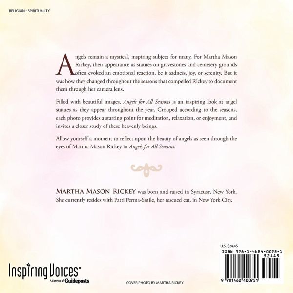 Angels remain a mystical, inspiring subject for many. For Martha Mason Rickey, their appearance as statues on gravestones and cemetery grounds often evoked an emotional reaction, be it sadness, joy, or serenity. But it was how they changed throughout the seasons that compelled Rickey to document them through her camera lens. Filled with beautiful images, Angels for All Seasons is an inspiring look at angel statues as they appear throughout the year. Grouped according to the seasons, each photo provides a starting point for meditation, relaxation, or enjoyment, and invites a closer study of these heavenly beings. Allow yourself a moment to reflect upon the beauty of angels as seen through the eyes of Martha Mason Rickey in Angels for All Seasons.