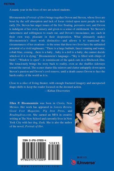 Sky is the color of figs soon to be the color of pigs-that pretty pink polluted color of a new day. It is dawn, early morning and Steven and Devon are awake and stare at the bright light of sunlight coming up like a fist unfolding through the open blinds. The reflections of angels from the wallpaper dance on the walls. There are Fruit Loops in the cabinet, milk in the fridge; Devon thinks that this is what she'll eat once she can get herself out of bed. Steven is angry. He is angry all the time these times. He feels elated then angry, happy then angry; numb, angry. Nothing-angry. Why is he so angry? Trapped might be a way to explain away his anger. In this way: a relationship with someone lasting longer than he had expected. Expecting more from a relationship than can be offered. Expecting in itself of something and getting nothing as he's expected back. Angels in the Bathtub paints an intimate portrait of one year in the relationship of Steven and Devon. It is their time together at school and at work, through friendships and crisis. They discover what they can give and what they can get. Ultimately, Steven and Devon must find their own place in the world as time passes.