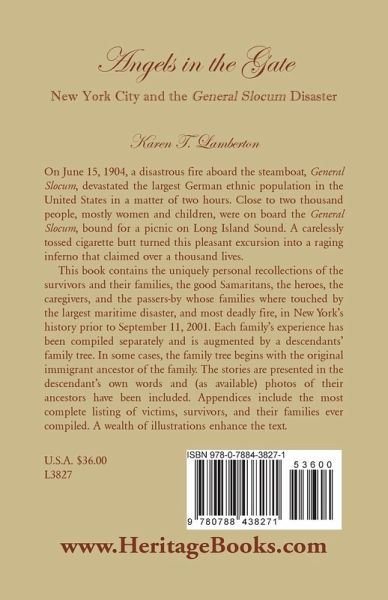 On June 15, 1904, a disastrous fire aboard the steamboat, General Slocum, devastated the largest German ethnic population in the United States in a matter of two hours. Close to two thousand people, mostly women and children, were on board the General Slocum, bound for a picnic on Long Island Sound. A carelessly tossed cigarette butt turned this pleasant excursion into a raging inferno that claimed over a thousand lives. This book contains the uniquely personal recollections of the survivors and their families, the good Samaritans, the heroes, the caregivers, and the passers-by whose families where touched by the largest maritime disaster, and most deadly fire, in New York’s history prior to September 11, 2001. Each family’s experience has been compiled separately and is augmented by a descendants’ family tree. In some cases, the family tree begins with the original immigrant ancestor of the family. The stories are presented in the descendant’s own words and (as available) photos of their ancestors have been included. Appendices include the most complete listing of victims, survivors, and their families ever compiled. A wealth of illustrations enhance the text.