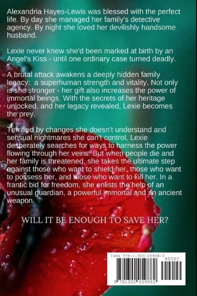 Alexandria Hayes-Lewis was blessed with the perfect life. Lexie never knew she'd been marked at birth by an Angel's Kiss-until one ordinary job turned deadly. A brutal attack awakens a deeply hidden family legacy: a superhuman strength and vitality. Not only is she stronger-her gift also increases the power of immortal beings. With the secrets of her heritage unlocked, and her legacy revealed, Lexie becomes the prey. Terrified by changes she doesn't understand and sensual nightmares she can't control, Lexie desperately searches for ways to harness the power flowing through her veins. But when people die and her family is threatened, she takes the ultimate step against those who want to shield her, those who want to possess her, and those who want to kill her. In a frantic bid for freedom, she enlists the help of an unusual guardian and an ancient weapon. Will it be enough to save her?
