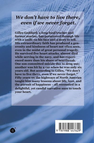 Gilles Goddard, a long-haul trucker and former marine, has persevered through life with a smile on his face and a story to tell. His extraordinary faith has produced a generosity and kindness of heart not often seen, even in the midst of great personal tragedy. He survived five heart attacks, almost died while serving in the navy, and has experienced more than his share of heartbreak. One son committed suicide due to drug use; another was hit by a car when he was only six years old and died. But according to Gilles, "We don't have to live there, even if we never forget." Fifty years on the highways of North America taught him many lessons about life, love, and the pursuit of happiness - all recounted in a delightful, yet candid narrative sure to touch your heart. The memoirs of Gilles Goddard began as one newspaper article in the local paper, but quickly morphed into a retelling of many personal stories, some humorous and some tragic. A moral thread runs through each story, as Gilles recounts triumphs and tragedies alike with the belief that God is in control.