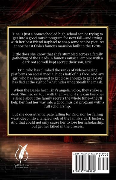 Tina is just a homeschooled high school senior trying to get into a good music program for next fall-and trying with her best friend Raphael to snap some senior pictures at northeast Ohio's famous mansion built in the 1920s. Little does she know that she's stumbled across a family gathering of the Daaés. A famous musical empire with a dark not so well kept secret: their son, Eric. Eric, who has climbed the ranks of video-sharing platforms on social media, hides half of his face. And any girl who has happened to get close enough to get a date has fled at the sight of what hides underneath the mask. When the Daaés hear Tina's angelic voice, they strike a deal. She'll go on tour with them-and if she can keep her silence about the family secrets the whole time-they'll help her find her way into a good musical program with a full scholarship. But she doesn't anticipate falling for Eric, nor for falling waist-deep into a tangled web of the family's dark history. And that could not only cause her to lose her scholarship, but get her killed in the process.