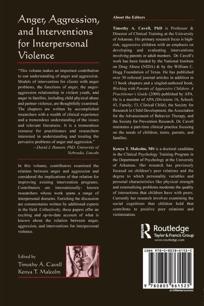 Interpersonal violence has many faces and many names— domestic violence, child abuse, school bullying. "Anger, Aggression, and Interventions for Interpersonal Violence" reveals what clinical scientists know and what mental health practitioners can do about interpersonal violence. To advance the way professionals conceptualize interventions for violent clients, contributors consider the complex relation between anger and aggression and discuss how that relation affects treating various forms of interpersonal violence. Should treatment focus on anger, on aggression, or on both? Does that decision depend on the form of interpersonal violence, or does the anger-aggression relation suggest a core set of intervention principles and strategies? Readers are provided up-to-date, detailed discussions as well as focused commentaries, all written by internationally known researchers. This volume will serve as a comprehensive guide for researchers and practitioners alike.