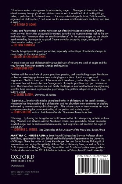 Anger is not just ubiquitous, it is also popular. Many people think it is impossible to care sufficiently for justice without anger at injustice. Many believe that it is impossible for individuals to vindicate their own self-respect or to move beyond an injury without anger. To not feel anger in those cases would be considered suspect. Is this how we should think about anger, or is anger above all a disease, deforming both the personal and the political? In this wide-ranging book, Martha C. Nussbaum, one of our leading public intellectuals, argues that anger is conceptually confused and normatively pernicious. It assumes that the suffering of the wrongdoer restores the thing that was damaged, and it betrays an all-too-lively interest in relative status and humiliation. Studying anger in intimate relationships, casual daily interactions, the workplace, the criminal justice system, and movements for social transformation, Nussbaum shows that anger's core ideas are both infantile and harmful. Is forgiveness the best way of transcending anger? Nussbaum examines different conceptions of this much-sentimentalized notion, both in the Jewish and Christian traditions and in secular morality. Some forms of forgiveness are ethically promising, she claims, but others are subtle allies of retribution: those that exact a performance of contrition and abasement as a condition of waiving angry feelings. In general, she argues, a spirit of generosity (combined, in some cases, with a reliance on impartial welfare-oriented legal institutions) is the best way to respond to injury. Applied to the personal and the political realms, Nussbaum's profoundly insightful and erudite view of anger and forgiveness puts both in a startling new light.