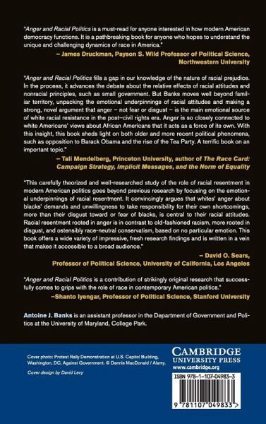 Politicians, scholars, and pundits often disagree about whether race has been injected into a political campaign or policy debate. Some have suspected that race sometimes enters into politics even when political elites avoid using racial cues or racially coded language. Anger and Racial Politics provides a theoretical framework for understanding the emotional conditions under which this effect might happen. Banks asserts that making whites angry - no matter the basis for their anger - will make ideas about race more salient to them. He argues that anger, and not fear or other negative emotions, provides the foundation upon which contemporary white racial attitudes are structured. Drawing on a multi-method approach, he demonstrates that anger plays an important role in enhancing the impact of race on whites' preferences for putting an end to affirmative action, repealing health care reform, hanging the confederate flag high, and voting for Tea Party-backed candidates.