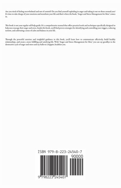 Are you tired of feeling overwhelmed and out of control? Do you find yourself exploding in anger and taking it out on those around you? It's time to take charge of your emotions and transform your life and that's where the book, "Anger and Stress Management for Men." comes in. This book is not your regular self-help guide. It's a comprehensive manual that offers practical tools and techniques specifically designed to help men manage their anger and stress. Inside this book, you'll find proven strategies for identifying and controlling your triggers, reducing tension, and cultivating a sense of calm and balance in your life. Through the powerful exercises and insightful guidance in this book, you'll learn how to communicate effectively, build healthy relationships, and create a more fulfilling and satisfying life. With "Anger and Stress Management for Men," you can say goodbye to the destructive cycle of anger and stress and say hello to a happier, healthier you.