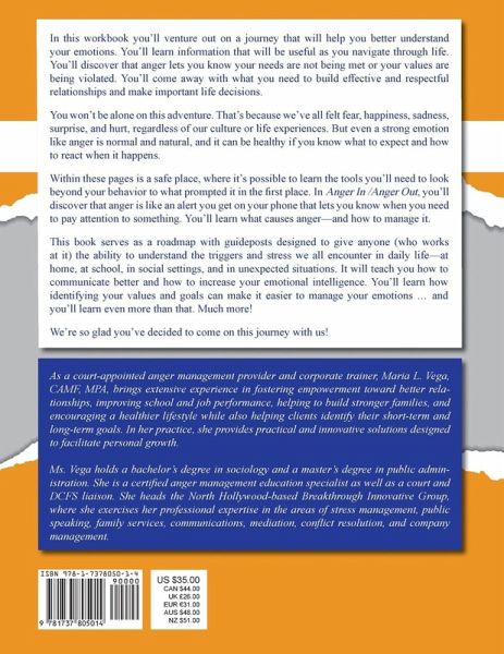 This workbook takes young people, teens and young adults, on a journey that will help them better understand their emotions. As a young person, you'll learn information that will be useful as you navigate through life. You'll discover that anger lets you know your needs are not being met or your values are being violated. You'll come away with what you need to build effective and respectful relationships and make important life decisions. You won't be alone on this adventure. That's because we've all felt fear, happiness, sadness, surprise, and hurt, regardless of our culture or life experiences. But even a strong emotion like anger is normal and natural, and it can be healthy if you know what to expect and how to react when it happens. Within these pages is a safe place, where it's possible to learn the tools you'll need to look beyond your behavior to what prompted it in the first place. In Anger In /Anger Out, you'll discover that anger is like an alert you get on your phone that lets you know when you need to pay attention to something. You'll learn what causes anger-and how to manage it. This book serves as a roadmap with guideposts designed to give anyone (who works at it) the ability to understand the triggers and stress we all encounter in daily life-at home, at school, in social settings, and in unexpected situations. It will teach you how to communicate better and how to increase your emotional intelligence. You'll learn how identifying your values and goals can make it easier to manage your emotions ... and you'll learn even more than that. Much more!!