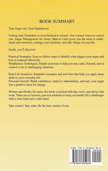 Discover the secret to calming your teen's raging emotions in just a few minutes a day without resorting to endless arguments or silent treatments. Do your teen's emotional outbursts leave you feeling helpless and frustrated? Does your family struggle to maintain open lines of communication amidst all the shouting? Do you wish there was a way to help your teen manage their feelings without adding to the chaos? You're not alone if you answered "yes" to any of these questions. Countless parents and teens face the same struggles, but you can break through these barriers with the supportive methods found inside this much-needed guide. This book offers game-changing insights and strategies that cultivate peace and understanding in familial relationships. Here's just a peek at what you'll discover inside: 7 practical ways to identify anger triggers and intervene before emotions flare up How to de-escalate heated arguments and restore calm in under 5 minutes The key mindfulness practices that teach teens healthy emotional expression Expert techniques for addressing social media pressures without sounding judgmental The step method for building a bridge between parents and teens through open communication How to transform misunderstood emotions into opportunities for emotional growth and self-awareness journaling prompts to uncover hidden stressors and facilitate emotional processing Strategies for tackling peer pressure and identity struggles, fostering a sense of belonging The secret to cultivating patience and empathy, strengthening the parent-teen bond How to build emotional intelligence that helps teens navigate social pressures with ease 5 practical exercises teens can integrate into their daily routine to manage stress and anxiety Real-life stories from teens and families who have successfully transformed their relationships The most common reasons for anger and frustration and how to address them effectively How to foster a safe space for teens to express emotions without fear of judgment Strategies for helping teens use their unique family dynamics to their advantage ...and so much more! You might worry that your teen will resist another "self-help" approach. The good news is that this book is anything but typical-it's designed with teens in mind and speaks directly to them in a supportive, relatable manner. Plus, the exercises are crafted to be inviting and engaging, ensuring your teen will be willing to try them. With this guide, you and your teen can embark on a journey toward emotional intelligence and mutual understanding, creating a more harmonious home environment. If you're ready to empower your teen to navigate their emotions and strengthen your family bonds, scroll up and click "Add to Cart" right now!