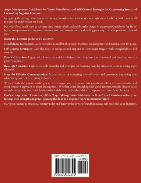 Anger Management Guidebook for Teens: Mindfulness and Self-Control Strategies for Overcoming Stress and Controlling Negative Emotions Navigating the teenage years can be like sailing through a storm. Emotions run high, stress levels rise, and it can be all too easy for anger to take the helm. But what if you could learn to navigate these waters calmly and confidently? "Anger Management Guidebook for Teens" is your compass to mastering your emotions, steering through stress, and finding your way to a more peaceful, balanced you. Inside this essential guide, you'll discover: Mindfulness Techniques: Learn to anchor yourself in the present moment, reducing stress and making room for peace. Self-Control Strategies: Gain the tools to recognize and respond to your anger triggers with thoughtfulness and restraint. Practical Exercises: Engage with interactive activities designed to strengthen your emotional resilience and foster a positive mindset. Real-Life Scenarios: Explore relatable examples and strategies for handling everyday situations without letting anger take over. Steps for Effective Communication: Master the art of expressing yourself clearly and assertively, improving your relationships and understanding with others. Written with the unique challenges of the teenage years in mind, this guidebook offers a compassionate and comprehensive approach to anger management. Whether you're struggling with quick tempers, stressful situations, or overwhelming emotions, you'll find valuable insights and actionable advice to help you overcome these obstacles. Don't let anger control your story. With "Anger Management Guidebook for Teens," you'll learn how to face your feelings with strength and grace, opening the door to a brighter, more harmonious future. Start your journey to emotional mastery today and discover the power of mindfulness and self-control at your fingertips.