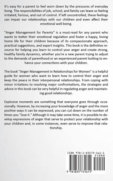 It's easy for a parent to feel worn down by the pressures of everyday living. The responsibilities of job, school, and family can leave us feeling irritated, furious, and out of control. If left uncontrolled, these feelings can impair our relationships with our children and even affect their emotional well-being. "Anger Management for Parents" is a must-read for any parent who wants to better their emotional regulation and foster a happy, loving home life for their children because of its compassionate approach, practical suggestions, and expert insights. This book is the definitive resource for helping you learn to control your anger and create strong, healthy family dynamics, whether you're a new parent trying to adjust to the demands of parenthood or an experienced parent looking to enhance your connections with your children. The book "Anger Management in Relationships for Women" is a helpful guide for women who want to learn how to control their anger and keep the peace in their interpersonal relationships. From coping with minor irritations to resolving major confrontations, the strategies and advice in this book can be very helpful in regulating anger and maintaining good relationships. Explosive moments are something that everyone goes through occasionally. However, by increasing your knowledge of anger and the more positive ways it can be expressed, you can cut down on the number of times you "lose it." Although it may take some time, it is possible to develop expressions of anger that serve to protect your relationship with your children and, in some instances, even serve to improve that relationship.