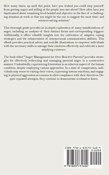 How many times, up until this point, have you wished you could stop yourself from getting angry and yelling at the people you care about? How often have you daydreamed about remaining level-headed and objective in the face of a challenging situation at work so that you might be the one to suggest the most time- and resource-saving solution? This thorough guide provides an in-depth exploration of many manifestations of anger, including an analysis of their distinct forms and corresponding triggers. Additionally, it offers valuable insights into the cultivation of adaptive coping strategies and the enhancement of interpersonal communication abilities. This eBook provides practical advice and real-life illustrations to empower individuals with the necessary skills to manage their emotions effectively and cultivate a more satisfying existence. The book titled "Anger Management for Over Reactive Parents" provides strategies for effectively redirecting and managing parental anger in a constructive manner. Undoubtedly, experiencing frustration is an inherent aspect of the human condition, despite employing various approaches. In a state of exasperation, individuals may resort to raising their voices, expressing intense emotions, and engaging in physical aggression as a means to elicit compliance with their directives. Despite repeated attempts, they continue to demonstrate a refusal to listen.