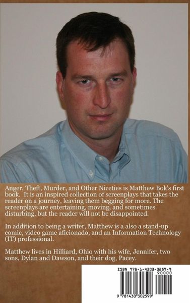 Anger, Theft, Murder and Other Niceties is a collection of 5 different screenplays. These screenplays contain a heist script, a thriller, a couple of who-dunnit's and one very esoteric script. Guaranteed to grab your attention and keep you wanting more, these stories are a sure-fire way to satisfy you entertainment jones.