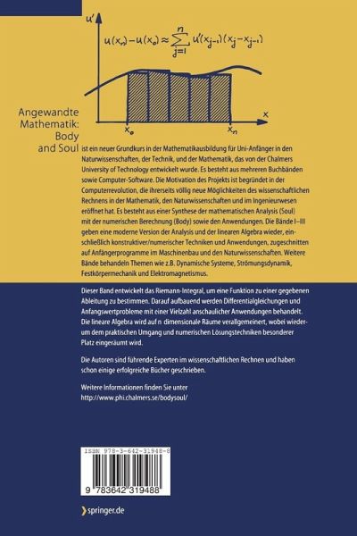 "Angewandte Mathematik: Body & Soul" ist ein neuer Grundkurs in der Mathematikausbildung für Studienanfänger in den Naturwissenschaften, der Technik, und der Mathematik, der an der Chalmers Tekniska Högskola in Göteborg entwickelt wurde. Er besteht aus drei Bänden sowie Computer-Software. Das Projekt ist begründet in der Computerrevolution, die ihrerseits völlig neue Möglichkeiten des wissenschaftlichen Rechnens in der Mathematik, den Naturwissenschaften und im Ingenieurwesen eröffnet hat. Es besteht aus einer Synthese der mathematischen Analysis (Soul) mit der numerischen Berechnung (Body) sowie den Anwendungen. Die Bände I-III geben eine moderne Version der Analysis und der linearen Algebra wieder, einschließlich konstruktiver numerischer Techniken und Anwendungen, zugeschnitten auf Anfängerprogramme im Maschinenbau und den Naturwissenschaften. Weitere Bände behandeln Themen wie z.B. dynamische Systeme, Strömungsdynamik, Festkörpermechanik und Elektromagnetismus.