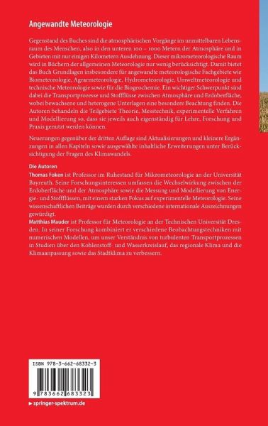 Gegenstand des Buches sind die atmosphärischen Vorgänge im unmittelbaren Lebensraum des Menschen, also in den unteren 100 -1000 Metern der Atmosphäre und in Gebieten mit nur einigen Kilometern Ausdehnung. Dieser mikrometeorologische Raum wird in Büchern der allgemeinen Meteorologie nur wenig berücksichtigt. Damit bietet das Buch Grundlagen insbesondere für angewandte meteorologische Fachgebiete wie Biometeorologie, Agrarmeteorologie, Hydrometeorologie, Umweltmeteorologie und technische Meteorologie sowie für die Biogeochemie. Ein wichtiger Schwerpunkt sind dabei die Transportprozesse und Stoffflüsse zwischen Atmosphäre und Erdoberfläche, wobei bewachsene und heterogene Unterlagen eine besondere Beachtung finden.