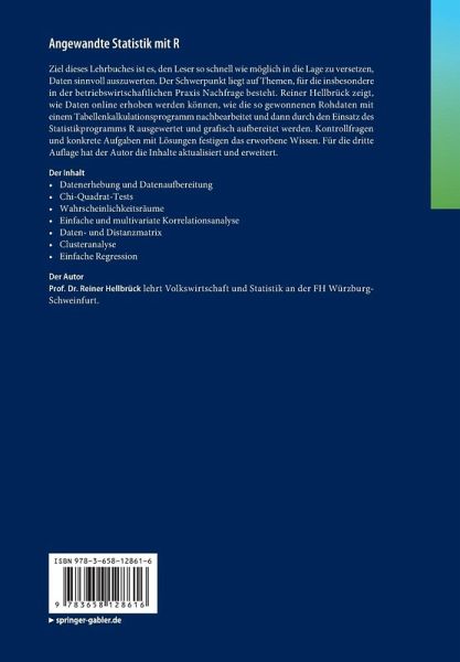 Ziel dieses Lehrbuches ist es, den Leser so schnell wie möglich in die Lage zu versetzen, Daten sinnvoll auszuwerten. Der Schwerpunkt liegt auf Themen, für die insbesondere in der betriebswirtschaftlichen Praxis Nachfrage besteht. Reiner Hellbrück zeigt, wie Daten online erhoben werden können, wie die so gewonnenen Rohdaten mit einem Tabellenkalkulationsprogramm nachbearbeitet und dann durch den Einsatz des Statistikprogramms R ausgewertet und grafisch aufbereitet werden. Kontrollfragen und konkrete Aufgaben mit Lösungen festigen das erworbene Wissen. Für die dritte Auflage hat der Autor die Inhalte aktualisiert und erweitert.