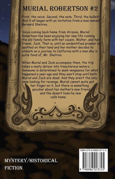 First, the voice, Second, the note. Third, the bullet! And it all began with an invitation from a man named Bernard Shetron. Since coming back home from Arizona, Murial Robertson has been enjoying her new life running the old family farm with her cousin, Walter, and her friend, Jack. That is, until an unidentified prowler is spotted on their land and her mother decides to embark on a journey to California with a man she is quite fond of, Mr. Shetron. When Murial and Jack accompany them, the trip takes a nasty detour into treacherous waters. Someone is determined to seek vengeance for what happened a year ago and they won't stop until both Murial and Jack are dead. And they aren't the only ones looking for revenge. Murial cannot quite put her finger on it, but there is something peculiar about her mother's new friend and the desert town he now calls home.