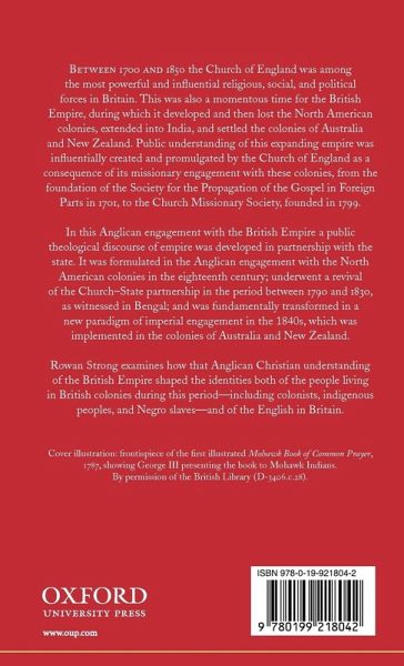 Between 1700 and 1850 the Church of England was the among the most powerful and influential religious, social, and political forces in Britain. This was also a momentous time for the British Empire, during which it developed and then lost the North American colonies, extended into India, and settled the colonies of Australia and New Zealand. Public understanding of this expanding empire was influentially created and promulgated by the Church of England as a consequence of its missionary engagement with these colonies, and its role in providing churches for British settlers. Rowan Strong examines how that Anglican Christian understanding of the British Empire shaped the identities both of the people living in British colonies in North America, Bengal, Australia, and New Zealand during this period - including colonists, indigenous peoples, and Negro slaves - and of the English in Britain.