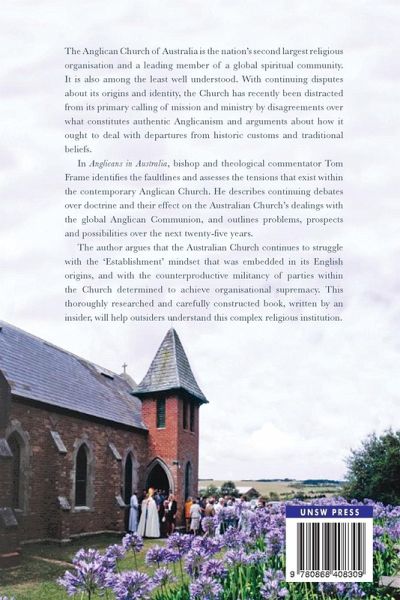 In Anglicans in Australia, bishop and theological commentator Tom Frame identifies the faultlines and tensions that exist within the contemporary Anglican Church, describes continuing debates over doctrine and their effect on the Australian Church's relationship with the global Anglican Communion, and outlines problems, prospects and possibilities over the next twenty-five years. This thoroughly researched and carefully constructed book, written by a perceptive and judicious insider, will help Anglicans understand their own complex religious institution and illuminate it for outsiders as well.