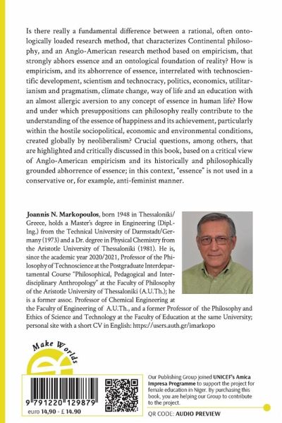 Is there really a fundamental difference between a rational, often ontologically loaded research method, that characterizes Continental philosophy, and an Anglo-American research method based on empiricism, that strongly abhors essence and an ontological foundation of reality? How is empiricism, and its abhorrence of essence, interrelated with technoscientific development, scientism and technocracy, politics, economics, utilitarianism and pragmatism, climate change, way of life and an education with an almost allergic aversion to any concept of essence in human life? How and under which presuppositions can philosophy really contribute to the understanding of the essence of happiness and its achievement, particularly within the hostile sociopolitical, economic and environmental conditions, created globally by neoliberalism? Crucial questions, among others, that are highlighted and critically discussed in this book, based on a critical view of Anglo-American empiricism and its historically and philosophically grounded abhorrence of essence; in this context, "essence" is not used in a conservative or, for example, anti-feminist manner. Joannis N. Markopoulos, born 1948 in Thessaloniki/ Greece, holds a Master's degree in Engineering (Dipl.Ing.) from the Technical University of Darmstadt/Germany (1973) and a Dr. degree in Physical Chemistry from the Aristotle University of Thessaloniki (1981). He is, since the academic year 2020/2021, Professor of the Philosophy of Technoscience at the Postgraduate Interdepartamental Course "Philosophical, Pedagogical and Interdisciplinary Anthropology" at the Faculty of Philosophy of the Aristotle University of Thessaloniki (A.U.Th.); he is a former assoc. Professor of Chemical Engineering at the Faculty of Engineering of A.U.Th., and a former Professor of the Philosophy and Ethics of Science and Technology at the Faculty of Education at the same University; personal site with a short CV in English: https://users.auth.gr/imarkopo
