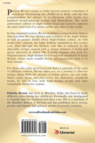 Patricia Brown creates a richly layered memoir comprised of anecdotes illuminating her childhood in India, and she has complimented her platter of recollections with nearly two hundred mouth-watering recipes and illustrations. The tenth anniversary edition of Anglo-Indian Food and Customs captures the spirit and food of a culture unlike any other in the world. In this expanded version, Brown includes a comprehensive history that describes the true identity and evolution of the Anglo Indian as well as greater details about Anglo-Indian cuisine. As with many other cultures, the Anglo Indians' assimilation into society took place through the kitchen, and this is reflected in the delectable recipes created with a unique infusion of herbs and spices mirrored in dishes like Country Captain and pork fry. Original fusion, Anglo-Indian food is enjoyed extensively in Great Britain, where many notable hotels and restaurants carry it on their menus. For those who enjoy good food and share a curiosity of the ways of different cultures, Brown takes you on a journey to discover unique tastes. With the mixture of Indian spices, one can make bland roasts, stews, and pies evolve into distinctive, wonderful meals. So fall in love with Anglo-Indian people and their remarkably distinctive cuisine.