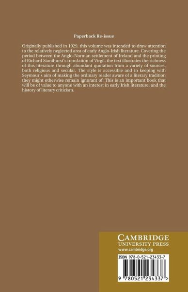 Originally published in 1929, this volume was intended to draw attention to the relatively neglected area of early Anglo-Irish literature.