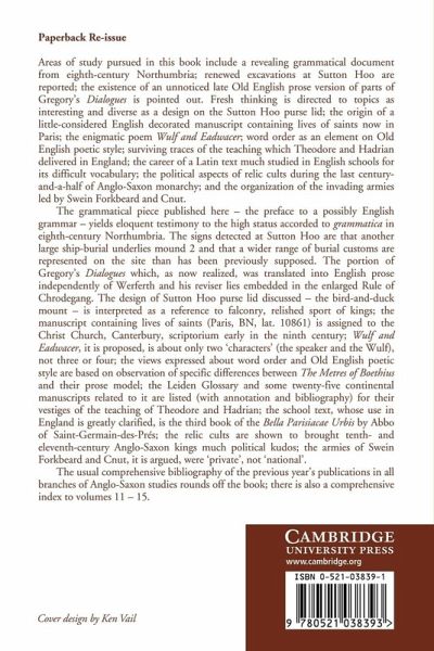 23 August 1985 Stanley B. Greenfield; 2. Wulf and Eadwacer: all passion pent Stanley B. Greenfield; 3. Bede the grammarian and the scope of grammatical studies in eighth-century Northumbria Martin Irvine; 4. The school of Theodore and Hadrian Michael Lapidge; 5. The third book of the Bella Parisiacae Urbis by Abbo of Saint-Germain-des-Prés and its Old English gloss Patrizia Lendinara; 6. Relic-cults as an instrument of royal policy c. 900