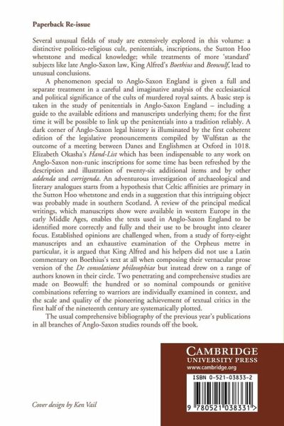 Several unusual fields of study are extensively explored including a distinctive politico-religious cult, penitentials, inscriptions, the Sutton Hoo whetstone and medical knowledge.