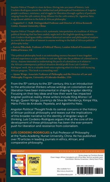 Angolan Political Thought introduces anticolonial thinkers whose writings on colonialism and liberation have been instrumental in the formation of Angolan identity. It focuses on the political nature of these thinkers and how their work has impacted Angolan political reality. Luís Cordeiro-Rodrigues both introduces and critically analyzes the thought of Queen Njinga, Mário Pinto de Andrade, Agostinho Neto and Pepetela and systematically addresses five important topics in Angolan political thought. Firstly, it gives a general introduction to African political philosophy and explains the place of Angolan political thought in this. Secondly, it explains how different Angolan thinkers have conceptualized colonialism and its effects on the global Black community. Thirdly, the book surveys what key Angolan thinkers have identified as legitimate and effective tools of liberation and resistance from colonialism. For example, it addresses the place of poetry for liberation, as well as the justification for war against colonial powers. Fourth, this book will explain the different theories that Africa and, in particular, African identity, consists of. Finally, it will look at Angolan theories of distributive justice and compensation for historical injustices.