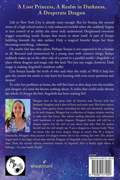 Life in New York City is already crazy enough. But for Soraya, the normal stress of a high school senior is only enhanced tenfold when she suddenly begins to lose control of an ability she never truly understood. Heightened emotions trigger something inside Soraya that wants to show itself. A part of Soraya bubbling beneath the skin surface. Only a magical bracelet keeps her from becoming something... inhuman. Or, maybe fate has other plans. Perhaps Soraya is not supposed to be a human at all. Rescued and mesmerized by a young man with crimson wings, Soraya suddenly wakes up on the other side of a portal to a parallel world-Angoleth-a place where dragons and magic rule the land. Not just any magic, however. Dark magic is making Angoleth's residents suffer. Can Soraya handle the truth of who and what she really is? Will it help her gain the control she needs or only leave her burning with even more questions and desires? To solve her problems at home, she will first have to dive deep into the troubles and dangers of a land she knows nothing about. A realm that could easily devour her whole. Is Soraya the heir Angoleth has been waiting for?