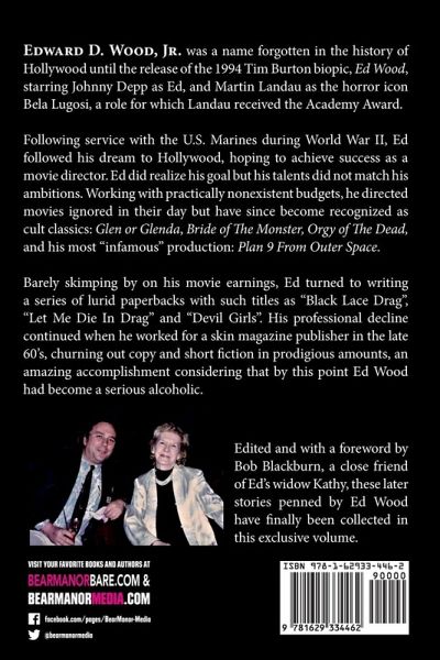 Edward D. Wood, Jr. was a name forgotten in the history of Hollywood until the release of the 1994 Tim Burton biopic, Ed Wood, starring Johnny Depp as Ed, and Martin Landau as the horror icon Bela Lugosi, a role for which Landau received the Academy Award. Following service with the U.S. Marines during World War II, Ed followed his dream to Hollywood, hoping to achieve success as a movie director. Ed did realize his goal but his talents did not match his ambitions. Working with practically nonexistent budgets, he directed movies ignored in their day but have since become recognized as cult classics: Glen or Glenda, Bride of The Monster, Orgy of The Dead, and his most "infamous" production: Plan 9 From Outer Space. Barely skimping by on his movie earnings, Ed turned to writing a series of lurid paperbacks with such titles as "Black Lace Drag", "Let Me Die In Drag" and "Devil Girls". His professional decline continued when he worked for a skin magazine publisher in the late 60’s, churning out copy and short fiction in prodigious amounts, an amazing accomplishment considering that by this point Ed Wood had become a serious alcoholic. Edited and with a foreword by Bob Blackburn, a close friend of Ed’s widow Kathy, these later stories penned by Ed Wood have finally been collected in this exclusive volume.