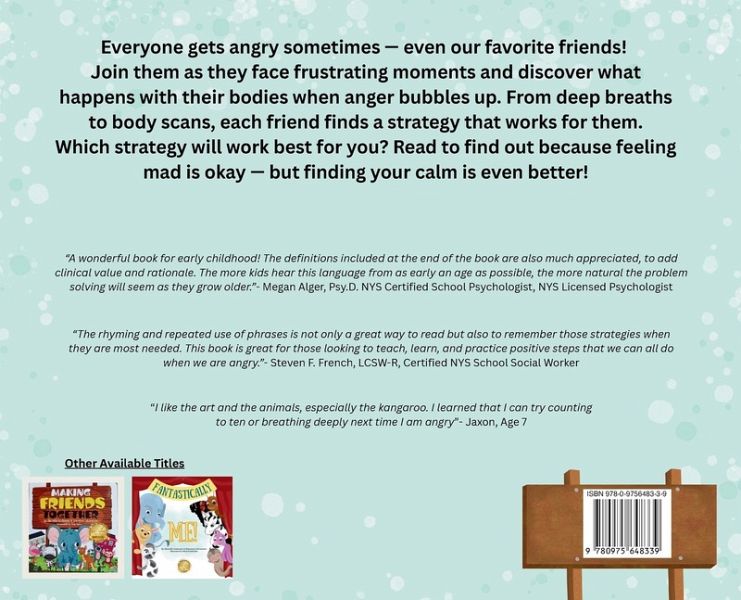 Angry? That's Okay! is a fun and engaging story that helps children recognize and manage their anger in a healthy way. Everyone gets mad sometimes-even our favorite friends! But what happens in our bodies when anger bubbles up? And how can we find ways to calm down? Through relatable scenarios, this book explores the different ways anger can look and feel. From clenched fists to racing hearts, young readers will learn to identify the physical signs of anger and discover simple, effective strategies to manage their emotions. Whether it's deep breathing, body scans, or taking a break, each character in the story finds a method that works for them. With vibrant illustrations and an encouraging message, Angry? That's Okay! empowers children to understand that anger is a natural emotion-but learning how to handle it can make all the difference. Perfect for parents, teachers, and caregivers, this book is a valuable tool for fostering emotional awareness and resilience in young readers.