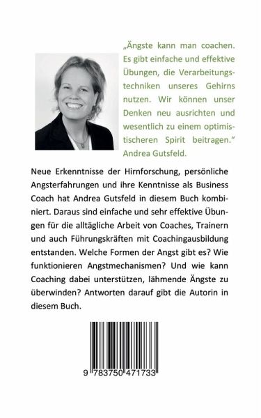 Angst - Jeder kennt sie! Jeder hat sie! Millionen Menschen kämpfen gegen Ängste an. Kaum jemand spricht darüber. Erst recht nicht im Business."Ängste kann man coachen. Es gibt einfache und effektive Übungen, mit denen wir Denken neu ausrichten und zu einem wesentlich optimistischeren Spirit beitragen können." Andrea GutsfeldIn einer sich transformierenden Gesellschaft und globalisierten Welt gibt es ausreichend Gründe für angstvolles Denken im privaten wie beruflichen Kontext, über alle Alternsgrenzen und Lebensphasen hinweg. Interessant ist die Erkenntnis: Das Gehirn unterscheidet nicht…mehr