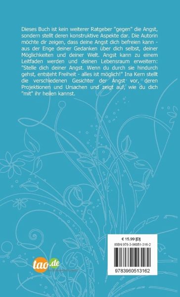 Dieses Buch ist kein weiterer Ratgeber "gegen" die Angst, sondern stellt deren konstruktive Aspekte dar. Die Autorin will dir zeigen, dass die Angst dich befreien kann; aus der Enge deiner Gedanken à ber dich selbst, deiner Mà glichkeiten und deiner Welt. Angst kann zu deinem Leitfaden werden und deinen Lebensraum erweitern: "Stelle dich deiner Angst. Wenn du durch sie hindurch gehst, entsteht Freiheit - alles ist mà glich!" Ina Kern stellt die verschiedenen Gesichter der Angst vor, deren Projektionen und Ursachen und zeigt auf, wie du dich selbst heilen kannst.